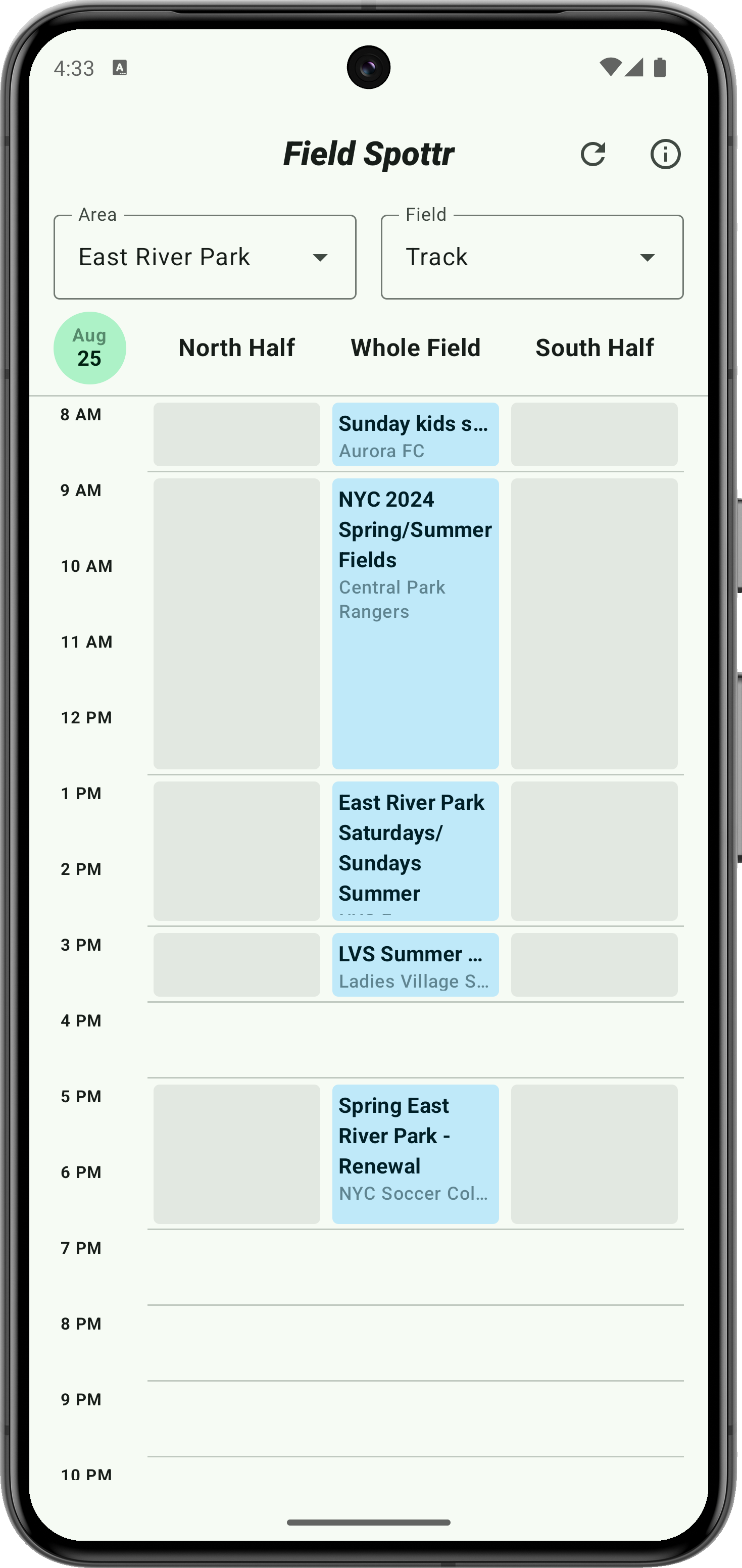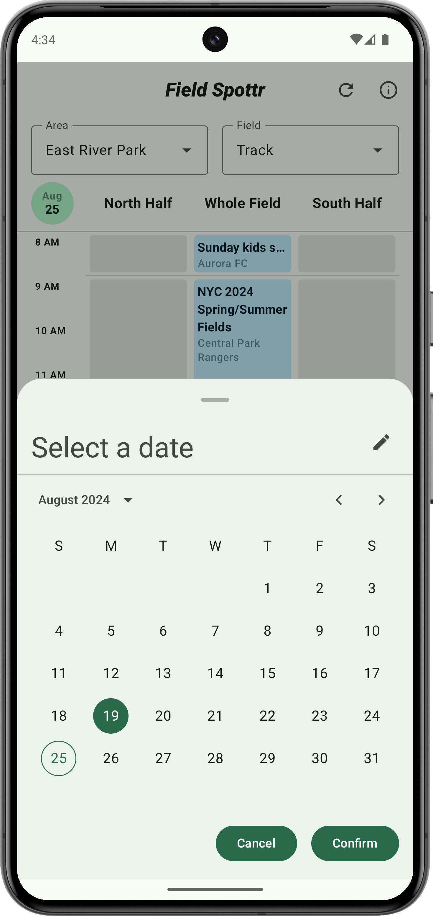 - Presents a simple calendar-esque Compose UI with a date picker, "group" picker (one park can have multiple fields), and permit events for that date and group.