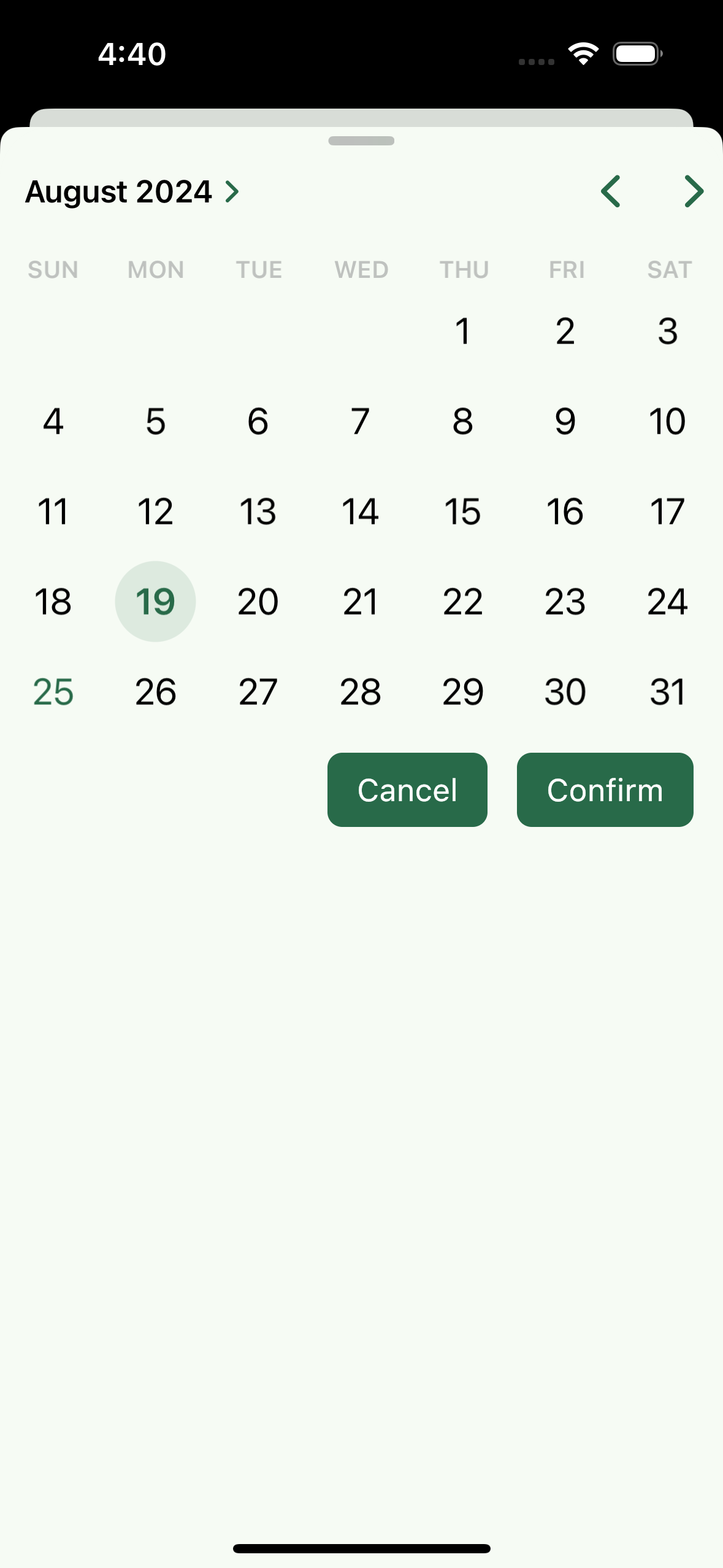 Native DatePicker and bottom sheet components on each platform (Android left, iOS right)